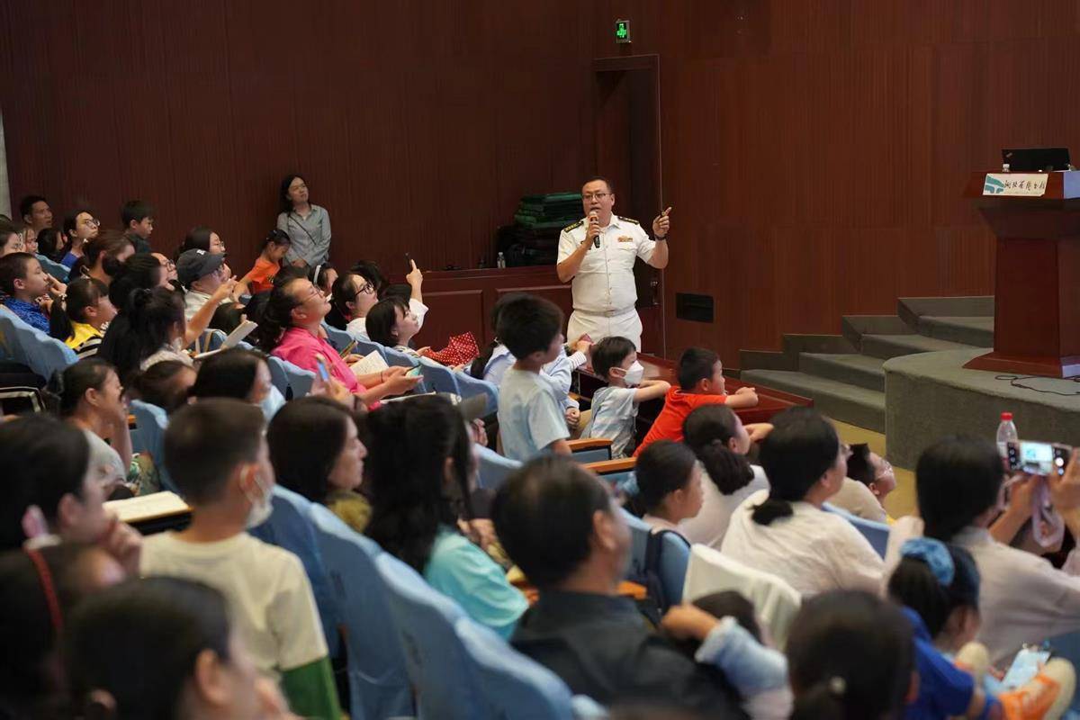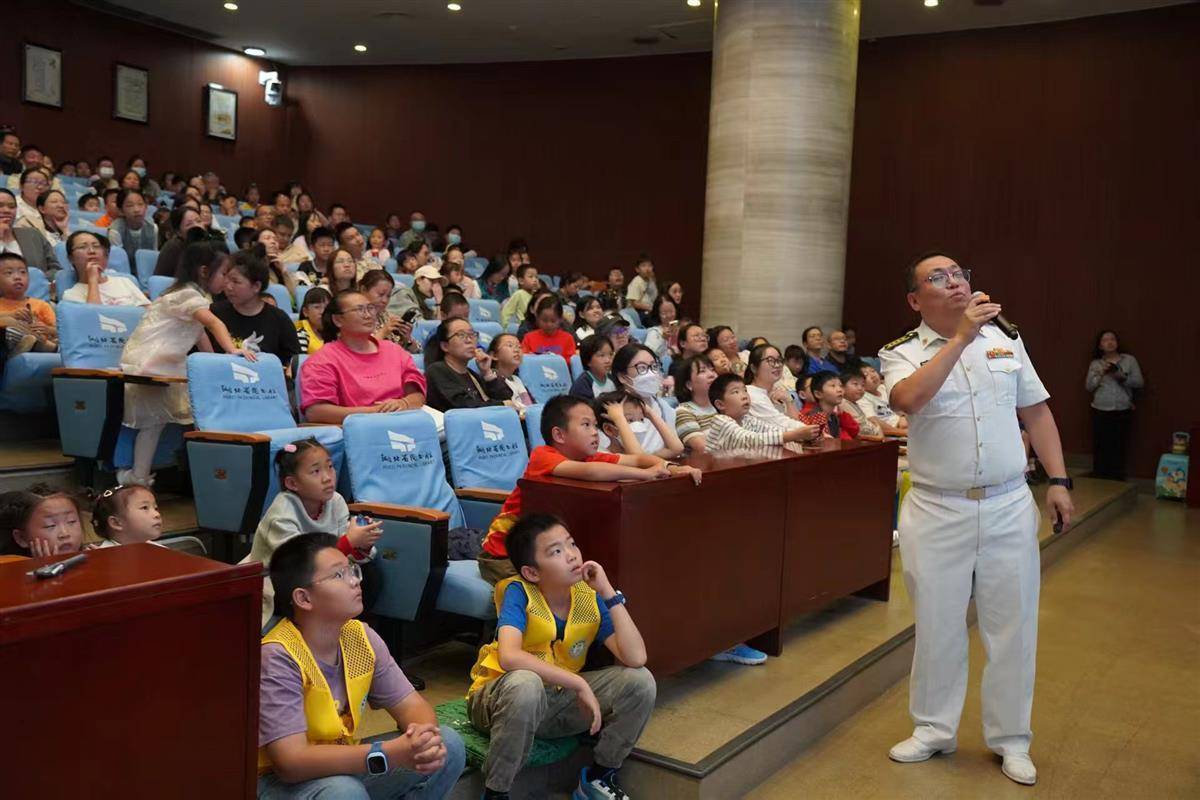 讲座互动环节气氛热烈,小读者们争相提问,从“潜艇如何在海底呼吸”到“未来海战的发展趋势”,付天晖都一一解答,并鼓励孩子们努力学习科学知识,将来为海洋强国事业贡献力量。