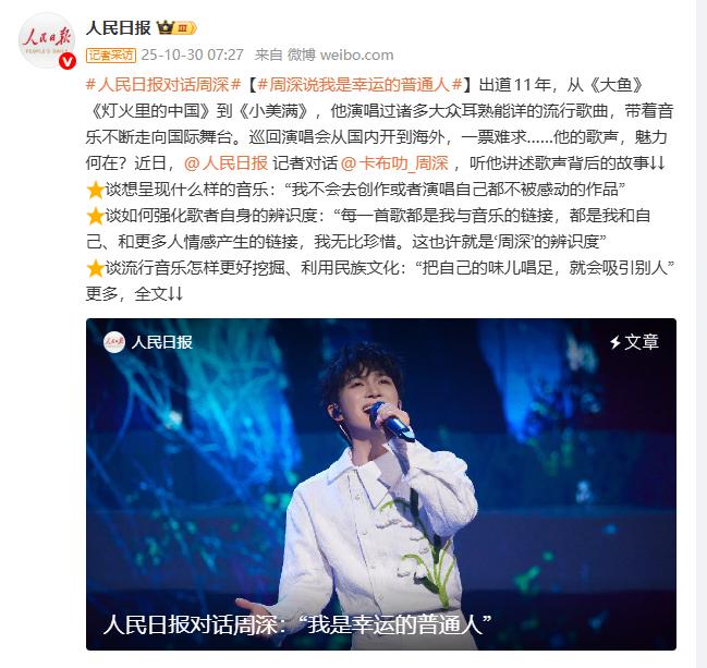 而在近日,人民日报更是发布了对周深专访的谈话细节。