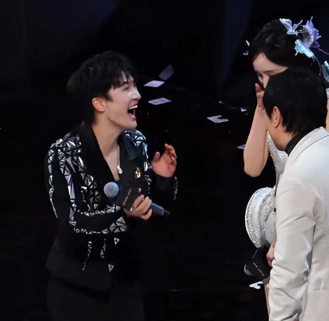 在主持节目的空闲时间里,杨幂、周深与沈腾这三位好友聊起了天。