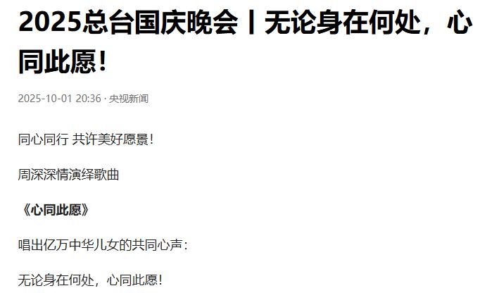 2025年央视国庆晚会,周深一首《心同此愿》感染无数观众。